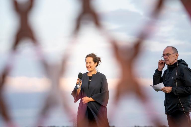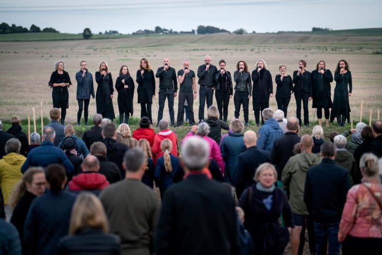 Ved solnedgangen var der lyd, kor og mystik på rytterens grav.